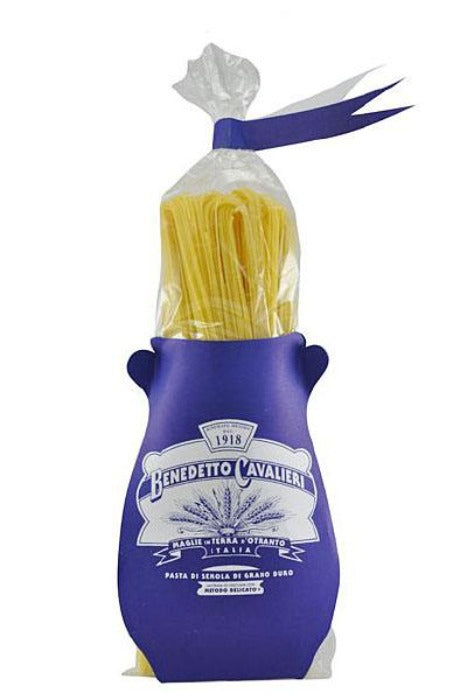 BENEDETTO CAVALIERI Spaghettini 500g offers a fine, elegant pasta made from premium durum wheat for a delicate yet firm bite. Thinner than classic spaghetti, spaghettini cooks quickly and pairs beautifully with light sauces, seafood, olive oil based dishes, and simple tomato blends. Slow dried to preserve its flavour and artisanal quality, it delivers even cooking and a refined texture that elevates both everyday meals and sophisticated Italian recipes. Crafted by a renowned producer, it brings authentic craftsmanship to your kitchen.