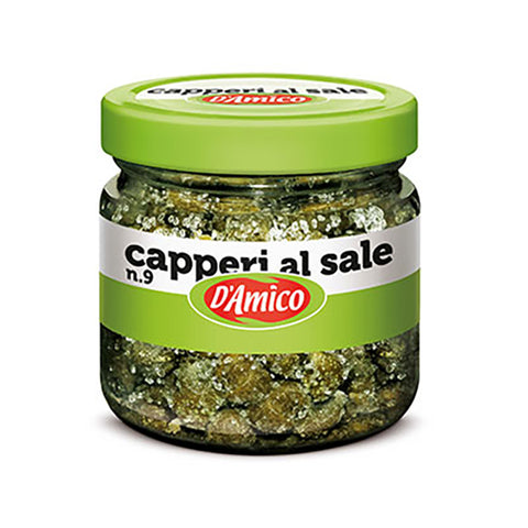 D’AMICO Capers in Salt 75g are caper buds preserved in salt, providing a stronger, more concentrated briny flavour than brined or vinegar-packed varieties. Rinsing them before use softens the saltiness while retaining their characteristic sharp, tangy taste.
