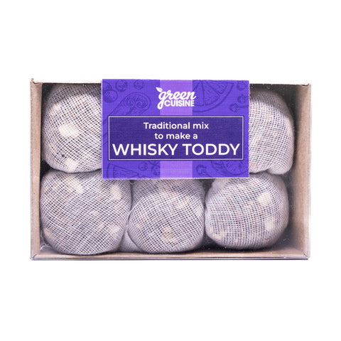 GREEN CUISINE Whisky Toddy Pouchettes 25g (x6 pouchettes) provides six individual sachets containing a blend of spices formulated for making a classic whisky hot toddy. Each pouchette typically includes warming ingredients such as cloves, cinnamon and citrus elements that infuse gently as the drink heats.